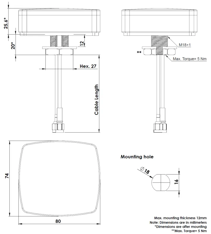 By supporting both low-band cellular frequencies and higher-band WiFi channels, this antenna suits applications where robust uplink/download performance is critical—such as remote-site routers, fleet communications and IoT gateways. Its screw-mount form factor makes installation straightforward on bulkheads, panels or studs, while the ground-independent design ensures stable operation even on non-metallic surfaces.