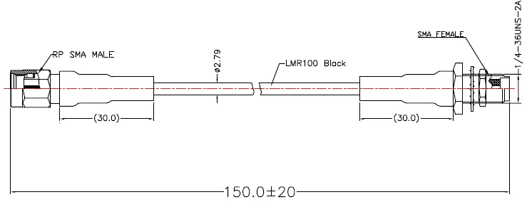 PTL-100 Patch Cable RP-SMA Male to SMA Female, 15cm